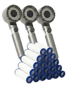 asnuy™ ayuda a reducir cloro, cal y otros residuos comunes del agua del grifo que pueden afectar al cuero cabelludo, la piel y el brillo del cabello.
