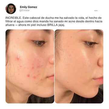 El 93% del agua corriente en España contiene cloro, cal y metales pesados que se acumulan en tu piel y cabello, exponiéndolos a daños diarios como: